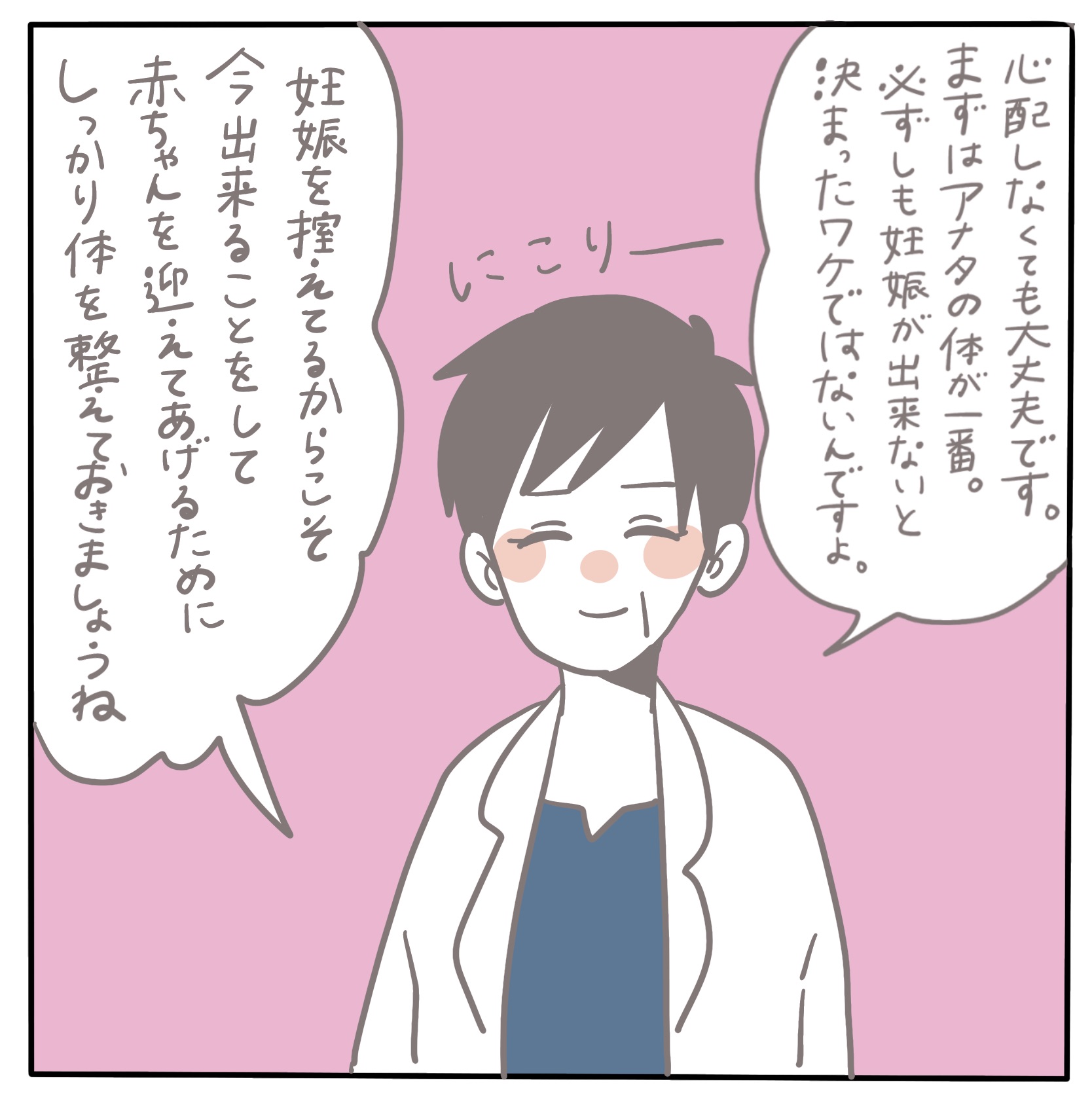 もう何年も前のことなので言ってもらったことも 教えてもらったこともうろ覚えですが 先生はなによりも私の体のこと、気持ちのことを いつも気にかけてくれていました それがやっぱり支えになったし、まだ頑張らないと って思える力にもなりました それからやっぱりこれからの人生を一緒に 過ごしていくであろう彼氏にも理解してもらうことも 安心要素のひとつとなりました。 ほんと大事。こういうの。0
